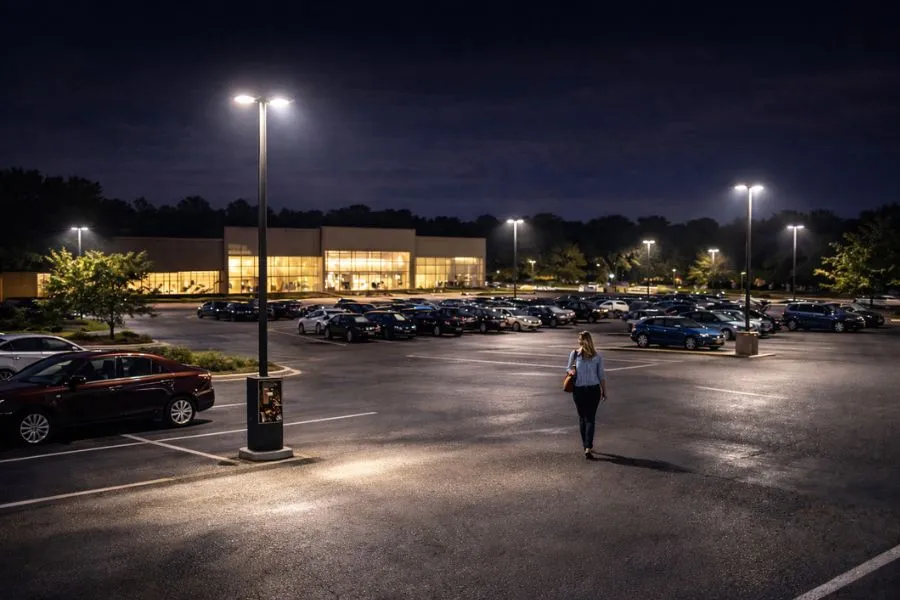 Parking lot lighting directly affects customer safety and your business’s liability exposure. Well-lit lots prevent slip-and-fall accidents, vehicle collisions, and pedestrian injuries. Inadequate lighting creates dangerous conditions and increases your liability for accidents. Proper lighting protects customers and employees while reducing your legal exposure. Crime prevention depends heavily on adequate parking lot lighting throughout properties. Well-lit parking areas deter criminals who prefer darkness for illegal activities. Thieves, vandals, and violent criminals avoid well-illuminated areas with high visibility. Security lighting protects customers, employees, vehicles, and your business property from crime.